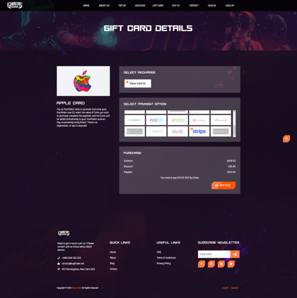 - Além disso, com o suporte a pagamentos em moeda local, gamers de diferentes regiões podem adquirir seus itens favoritos sem se preocupar com a falta de cartões internacionais. Se você está procurando vouchers para jogos, cartões de presente ou até mesmo IDs de jogadores, nossa plataforma oferece gestão de vouchers de jogos e gestão de venda de IDs de jogadores, com opções seguras e práticas para cada tipo de necessidade.