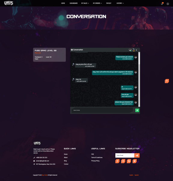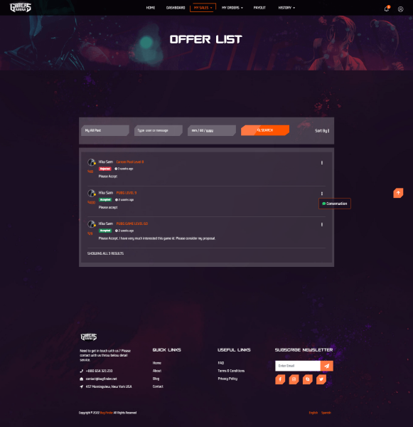 ✓ Gestão de Venda de IDs de Jogadores - Recursos para o Usuário: